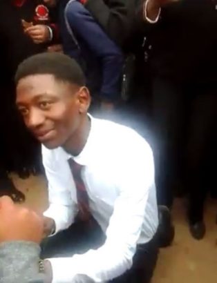 Mduduzi Tlou aged 18 proposed for marriage to his 16-year-old lover (name withheld because she`s underage) at Tholulwazi secondary school in Tsakane, Ekurhuleni in front of cheering fellow pupils.