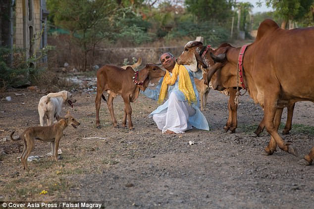The father of two left his family five years back and started living in a religious retreat, about four miles away from his home in Ahmedabad, in Gujarat, India, to spend time with his cows.