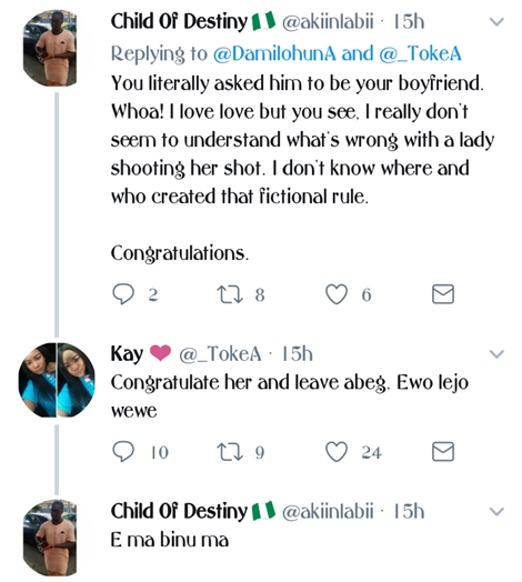 A Twitter user identified as Myde (DamilohunA) has taken to the social networking platform and shared some romantic photos of her boyfriend who she reportedly asked out by herself.