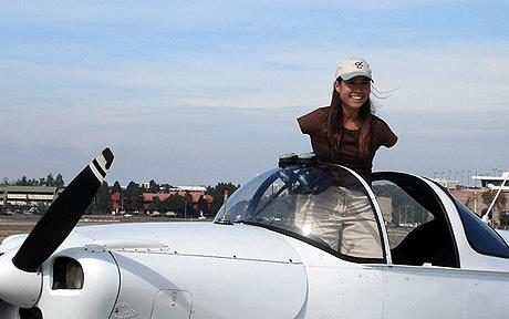 She learned to fly in rudderless light Ercoupe aircraft, where you only need your hands to control it rather than both hands and feet.