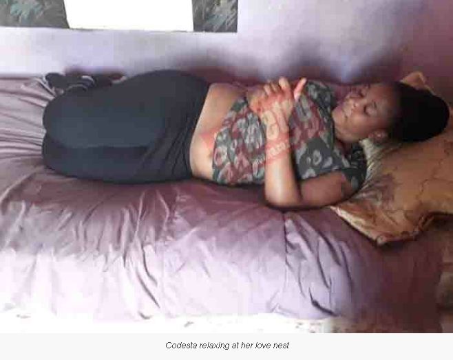Reports say Codesta lied to her husband that she is working as a house maid to a high ranking official who does not want visitors yet she`s hooking men for sex and booked at a local brothel in the town.