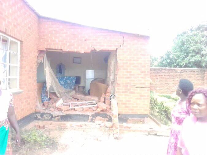 A wall of a house in area 18 in Lilongwe has been knocked down after a 3 tonner lorry plunged into the living room.