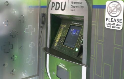 The PDU works like an ATM with skype-like audio visual interaction between patients and pharmacists.