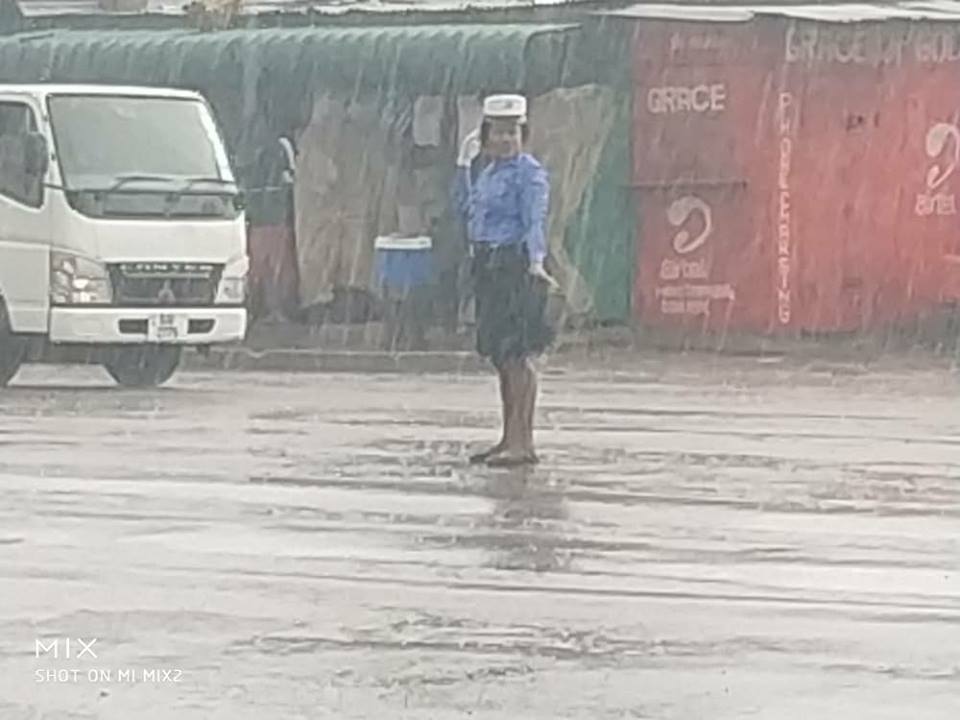 Yesterday, Facebook users reacted in their huge numbers after photos of Constable Charity Nanyangwe controlling vehicles in heavy rains at one busy road in Lusaka surfaced online.