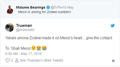 Following that tweet, tweeter was crowded with tweets linking Messi’s visit to South Africa to Zodwa wabantu.