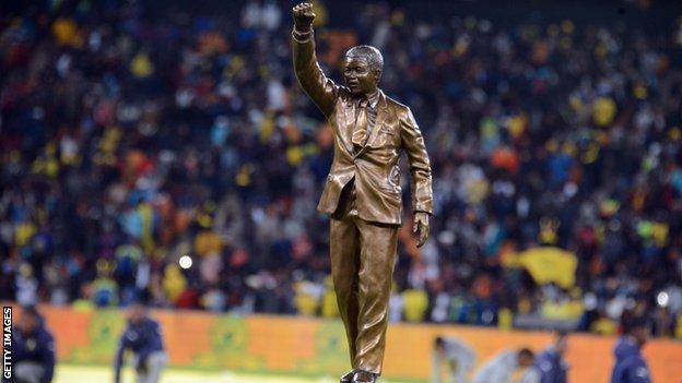 The end of the match saw Barca winning 3-1 to Sundowns and they were given a trophy depicting Nelson Mandela.