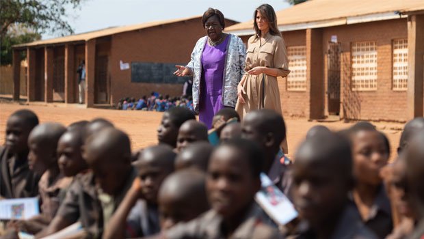 Mrs Trump toured classrooms at Lilongwe’s Chipala Primary School, which gets textbooks and other education assistance from the US Agency for International Development.