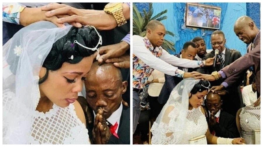 In the pictures going round the internet, the bride is seen looking rather sad and unhappy to be getting married. From the photos, it is clear that something is definitely wrong with the bride.