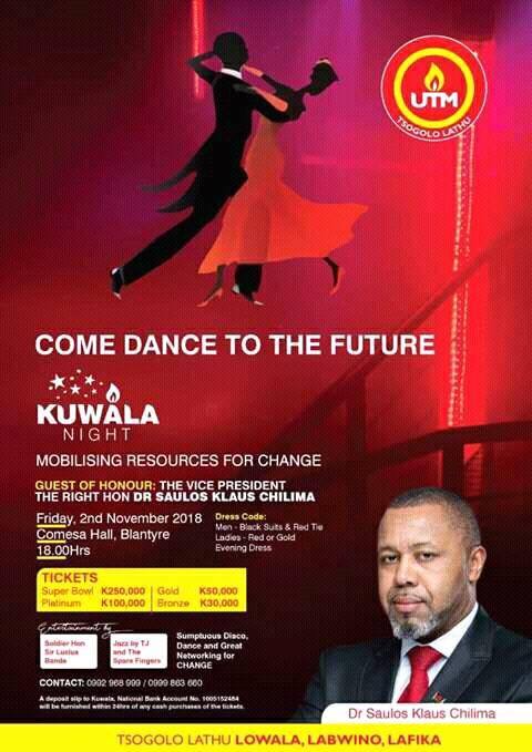 State Vice President Dr. Saulos Chilima who is also leader of United Tranformation Movement (UTM) will today evening attend dinner and dance for the UTM dubbed ‘Kuwala night’ in the commercial capital Blantyre.