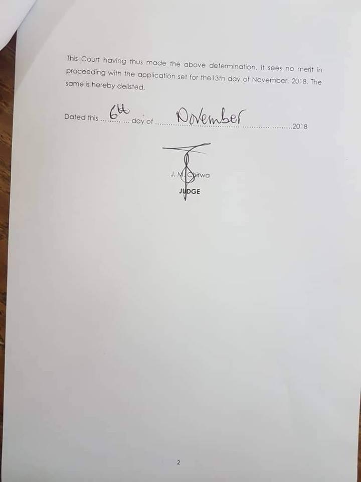 But the High Court has today thrown the application and the case has since been delisted in the court chambers.