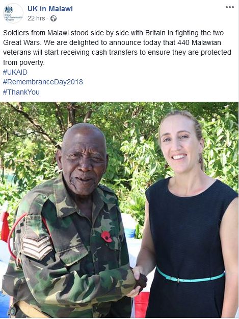 Four hundred and forty Malawian veterans are among the 7000 Commonwealth veterans who, from this year, will start receiving regular cash transfers to prevent them from going hungry under the new Department for International Development (DFID).