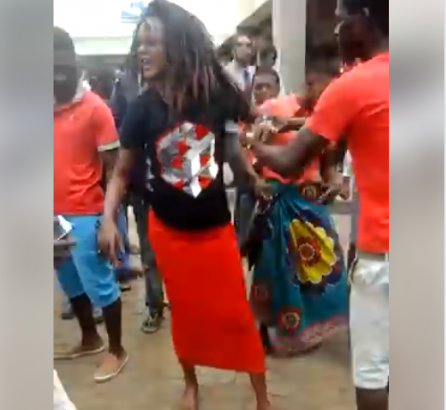 In the background, voices of some onlookers can be heard praising the woman while some are screaming jambulani!! jambulani!!.