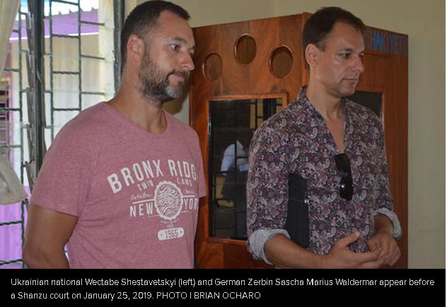 Mr Zerbin Sascha Marius Waldermar (a German) and Mr Wectabe Shestavetskyi (Ukrainian) on Thursday denied the charges before a Shanzu court in Nairobi.