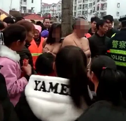 In the clip, people are seen gathering around the pair in the Mingtian area of China’s Guizhou Province.