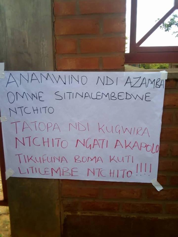 The staffs have closed down the main entrance to Neno District Hospital and placards of the said strike are all over the main gate.