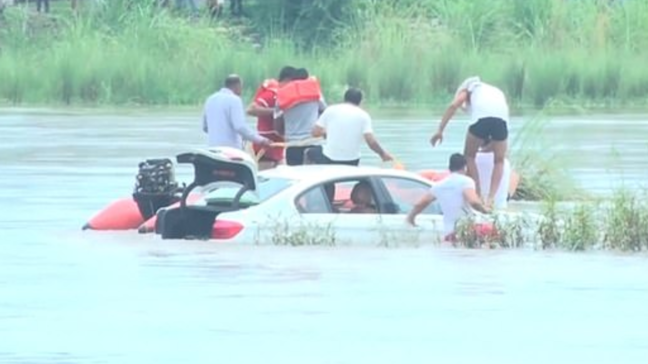 Video from the scene shows the ride floating above a pile of tall grass as locals, divers and an earthmover try to pry the submerged car out of the water. Officials don’t plan on making any arrests since no complaints were filed.