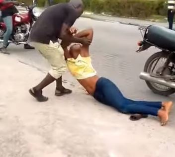 In a video that’s begun making the rounds online, the lady fainted repeatedly on the busy road purported saying “marry me or I die“.