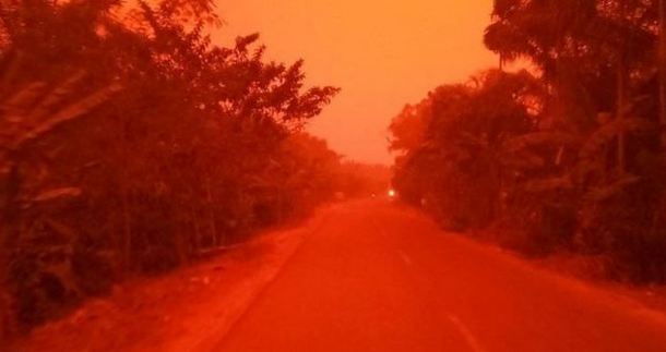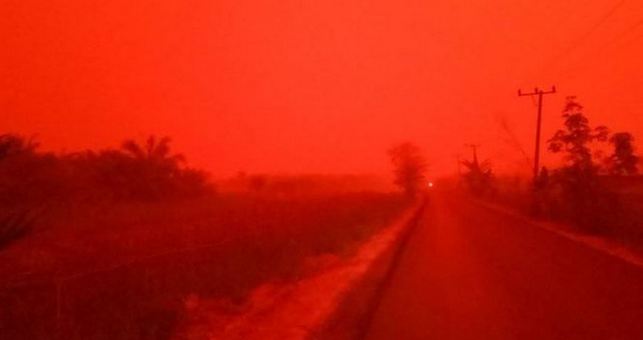 Skies over an Indonesian province turned red over the weekend, thanks to the widespread forest fires which have plagued huge parts of the country.