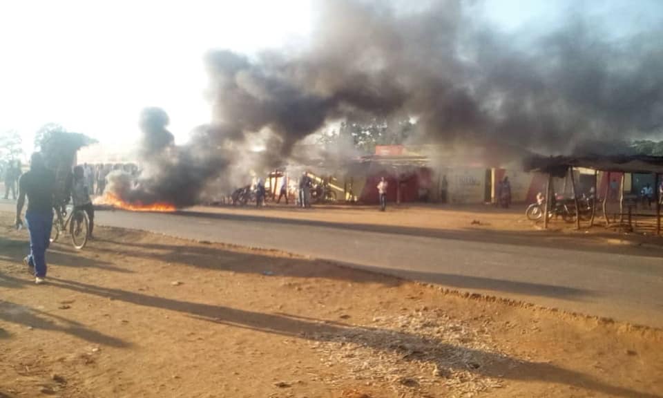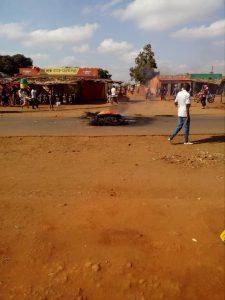 Angry people have blocked the road at Nsundwe area in the capital Lilongwe protesting against President Peter Mutharika’s decision to hold a political rally at Kawale Primary School today.