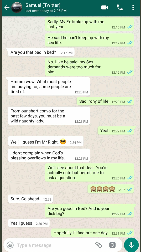 Screenshots of the hilarious Whatsapp chats from the investigation revealed how the lady’s boyfriend was tested and he failed woefully.