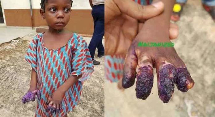 The small girl was simply identified as Hope, she had her hands burnt by her grandmother who placed them over a gas stove in Edo State which had caused serious outrage online.