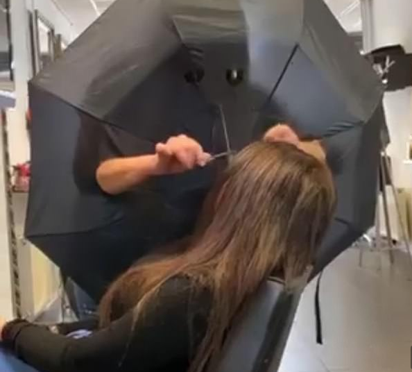 Covid-19: Hairdresser Creates Barrier Between Herself & Clients Using an Umbrella