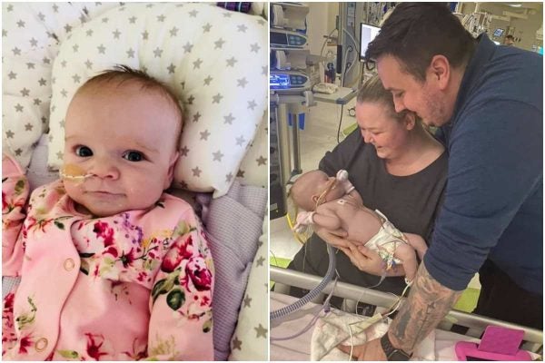 The pictures of the baby released by Metro UK with consent of her parents, show the baby girl lying in hospital on a Continuous Positive Airway Pressure machine supplying oxygen, surrounded by wires, tubes and equipment.