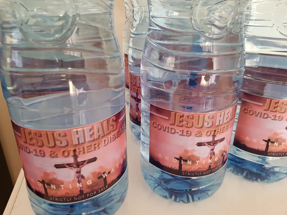 “Here is anointing water to fight and heal Coronavirus and other diseases.