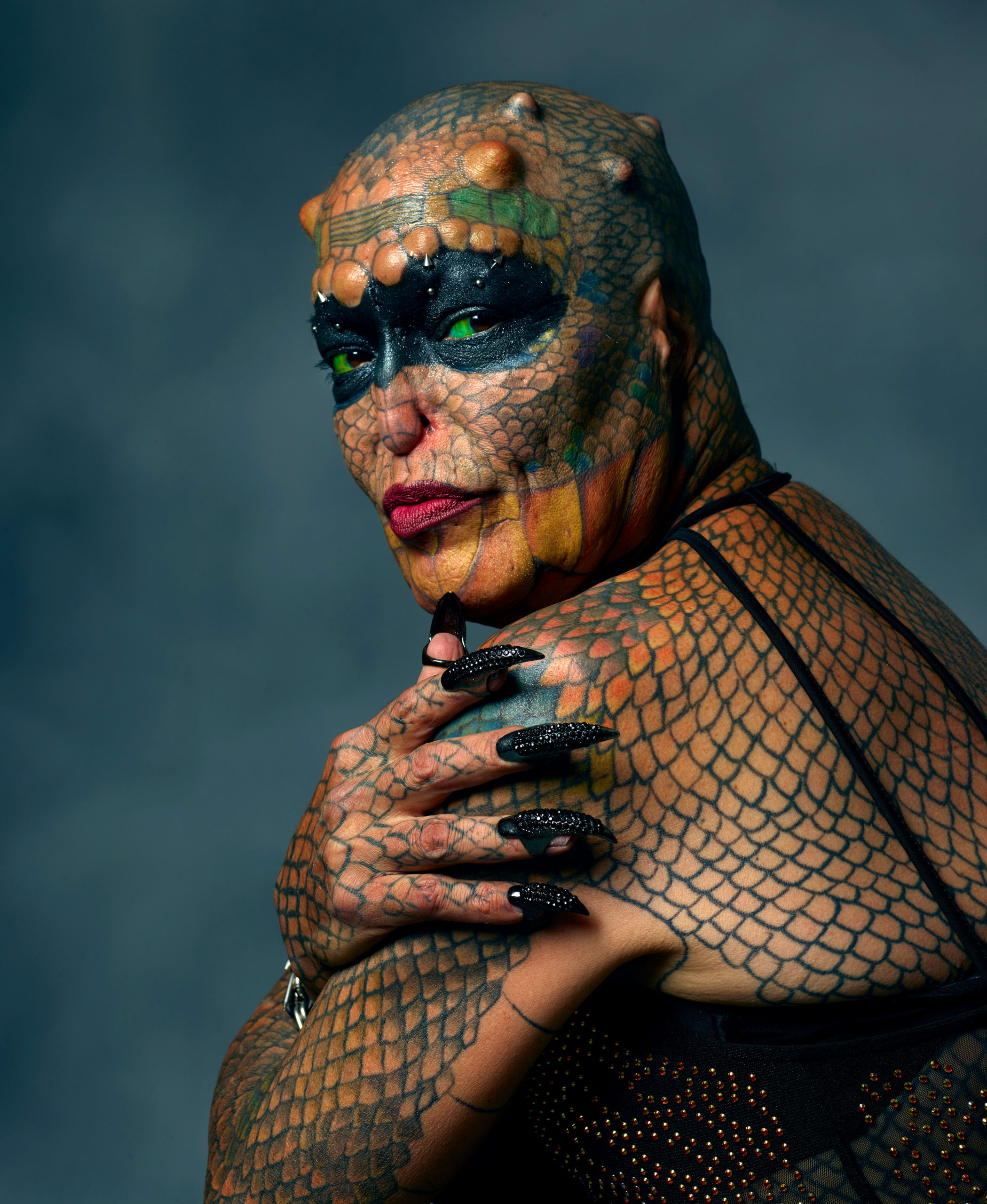 ‘Being true to my reptilian nature, I am an androgynous creature,’ Tiamat explains. ‘When people ask me if I am male or female, I tell them that I am both and I am neither.