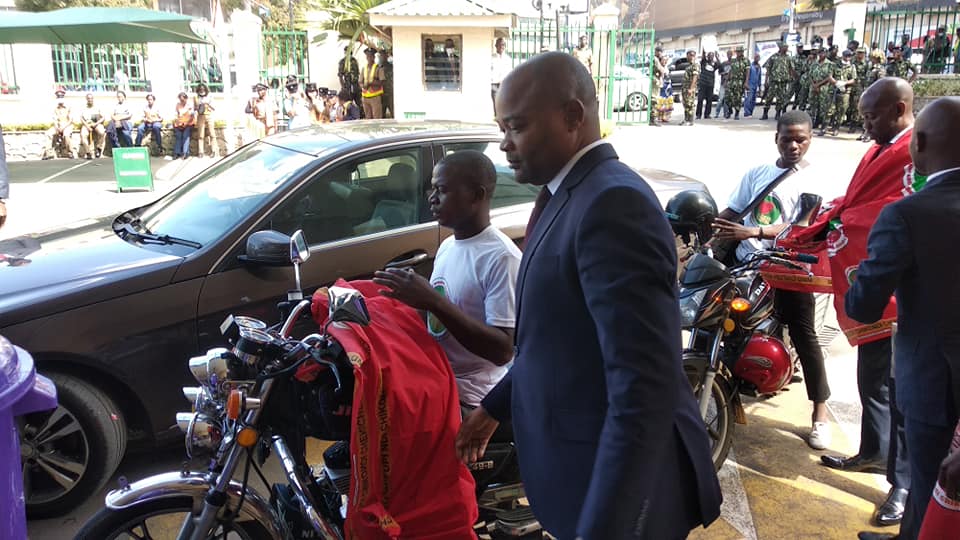 MMD President Peter Kuwani arrives at Mount Soche on motorcycle to present nomination papers