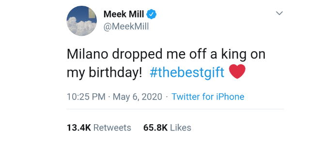 He wrote: “Milano dropped me off a king on my birthday! #thebestgift.”