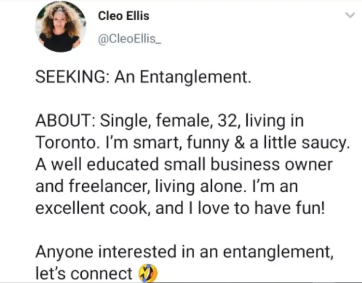 “I can cook excellently and I really love to have fun, anyone who is interested in entanglement with me should let’s connect,” she said.