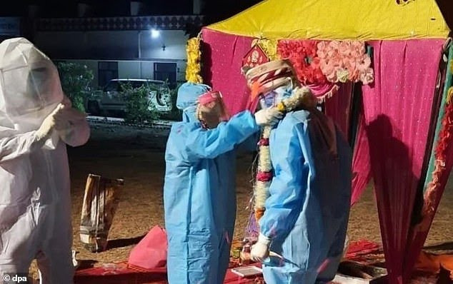 The couple, whose names have not been made public, became husband and wife on Sunday, December 6, in the courtyard of a coronavirus quarantine center in Baran, a district in the Rajasthan state, India, while wearing full personal protective equipment (PPE) including hazmat suits, face masks and visors.