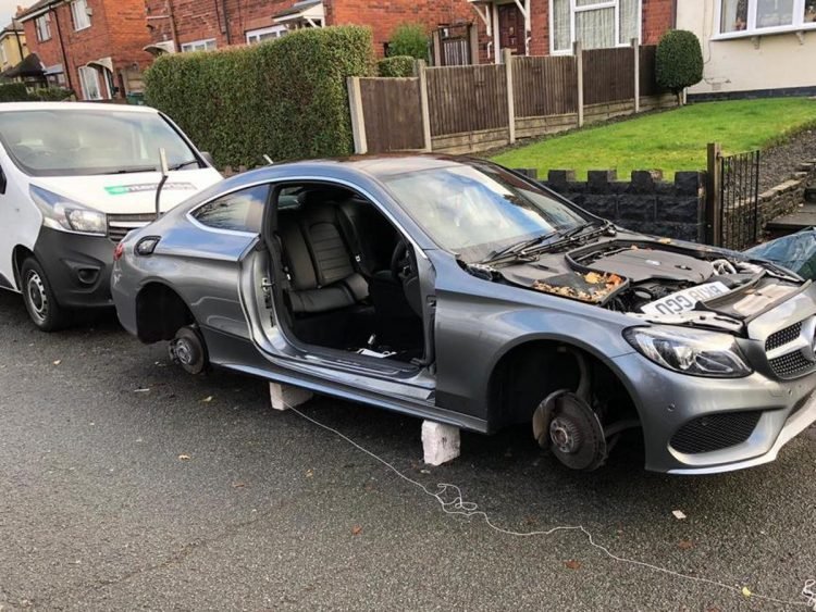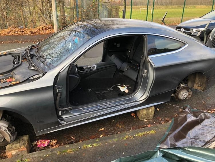 The owner of a dark grey C-class Mercedes Benz was shocked to find it stripped down to a metal shell last week, after a gang of “professional” thieves dismantled it right in front of his house, at night.