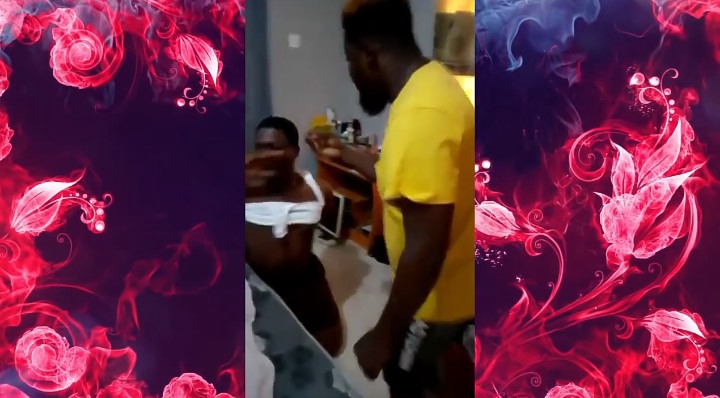Man caught his friend cheating in bed with his wife to be! In the video that was uploaded on the Twitter social media, it showed the very moment the said man was about opening the door of the house where the friend and his wife to be were in.