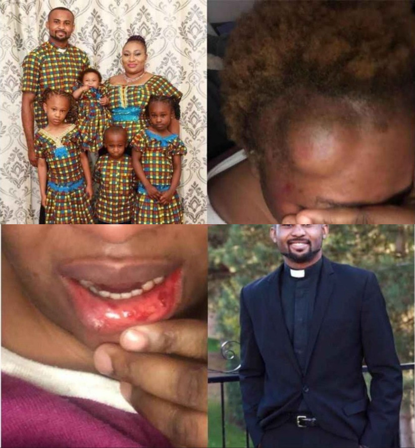 Photos making the rounds online show Genevieve, the mother of his 4 kids, with a bump on her head and blood oozing from her split lower lip. Her husband, the reverend, was accused of being responsible.