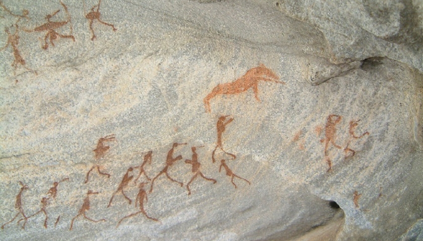 The early Stone Age settlers at the time were the BaTwa hunter-gatherers and there are paintings that depict their lives. Of the 127 drawings discovered so far at the site, there are two examples of tribal art — the red ochre ones seem to have been painted earlier by the Akafula people that show the lives of hunters who are believed to have disappeared in the 19th century.