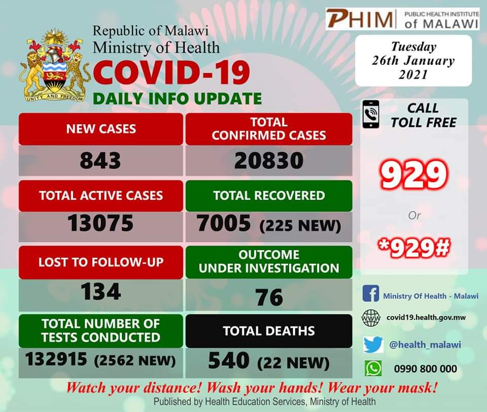 In the last 24 hours Malawi has registered 225 covid-19 recoveries as confirmed cases have reached 20, 000.