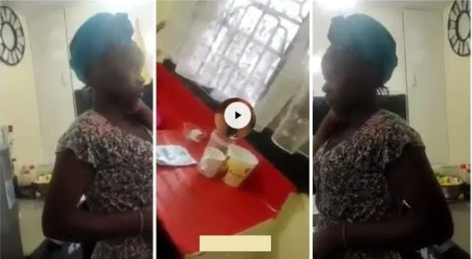 In a video shared online, the maid is seen standing in the kitchen, ashamed and wearing a guilty look while trying to answer the questions her madam was asking.