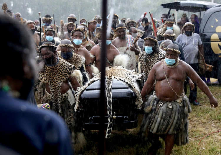 The king’s regiments accompanied his body from the local mortuary to KwaKhethomthandayo, in Nongoma, where he was laid to rest.