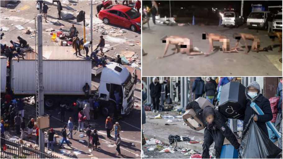 SOUTH AFRICA UNREST: Looters Stripped N@K.Ed Forced To Crawl In Public (See Video)
