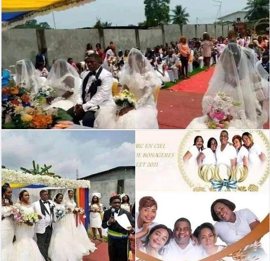 SOCIAL media users have expressed shock after Gabonese business mogul identified as Mesmine Abessole also known as Kether De Bonegere has tied the knot with four women at the same time in a grand ceremony.