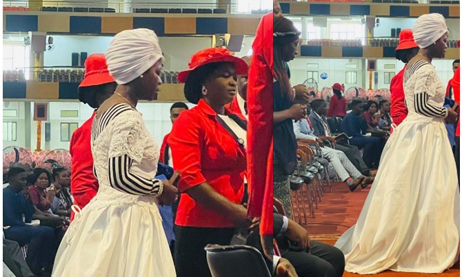 When questioned about her outfit, the yet-to-be-identified lady said she wore the dress to express her faith in God for a marital breakthrough.