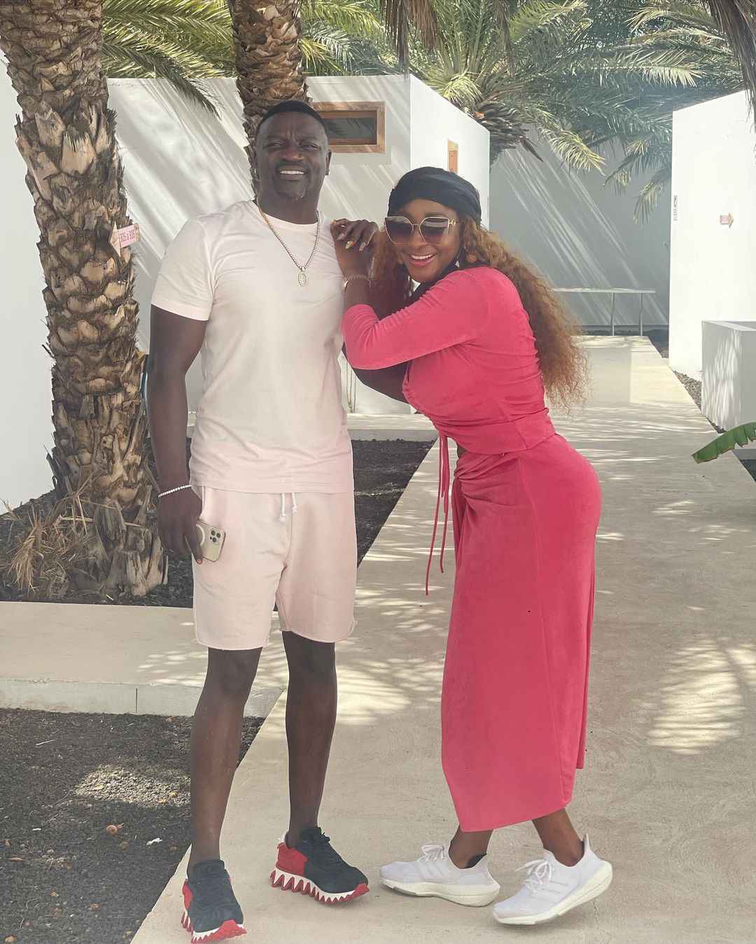 Ini Edo is seen in a pink hot dress whilst Akon is seen in all-white shorts and a blouse. Though there is no report that Ini and Akon are in a relationship, fans are already praying that it happens between them.