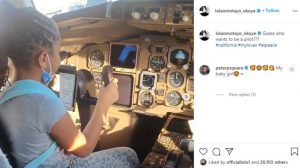Nigerian singer, Peter Okoye aka Mr. P, and his wife, Lola Omotayo have gushed over their daughter, Aliona after she manned an airplane as the pilot.