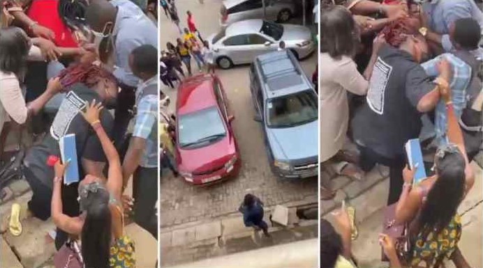 In the video, the girls could be seen pulling each other’s hair and engaging in a physical exchange as bystanders tried to separate them.