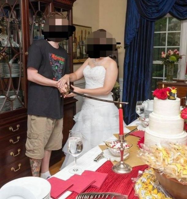 A photo of the bride and her groom at their wedding reception was shared on Reddit.
