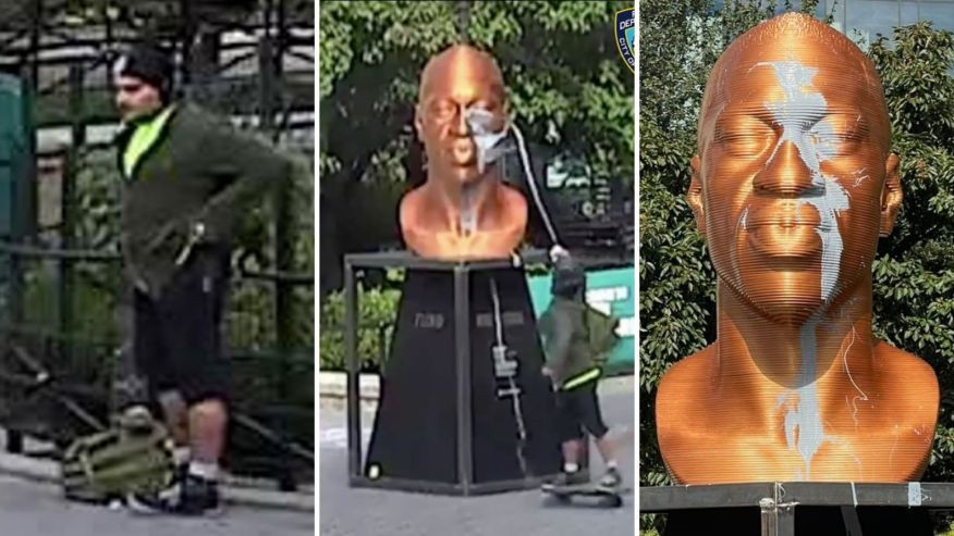 “The individual threw gray paint on the face and base of the statue and then fled the location while still riding on the skateboard,” the NYPD said in a report on the incident.