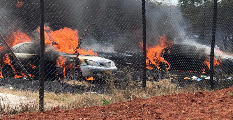 One of the burnt cars, a Mazda BT50 twin cab is valued at US$20 000 while the value of the other one, a Toyota Hilux twin cab could not be ascertained. However, the market price for a brand-new Toyota Hilux D-4D 2013 model is US$50 000.