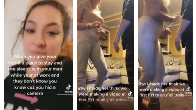 The text on the video reads; “When you give your friend a place to stay and she sleeps with your man while you at work and they don’t know you know cuz you hid a camera.”